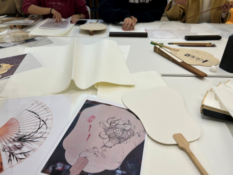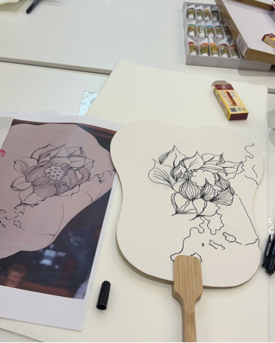 本次活动为大家提供了团扇、宣纸、胶水、水粉颜料、绘图工具等材料,同学们自由选择绘画材料,制作了专属于自己的精美纸扇。