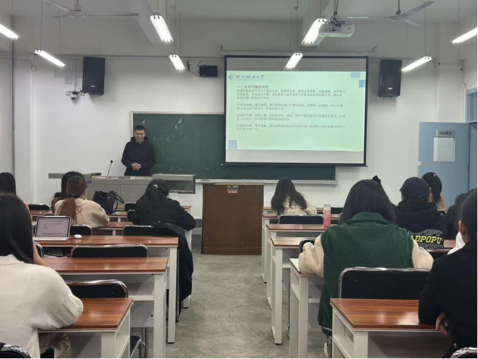 赵钰琨讲解了电信诈骗编造事实、难以核实、利益引诱等典型特征,总结出受骗的主要原因。结合个人经历详细介绍了包括“虚拟网站投资理财”“兼职刷单高额返利”“冒充客服主动赔付”等电信诈骗的各种形式,提醒大家遇到上述情况要提高警惕。并通过典型案例总结出八条防范电信诈骗“小宝典”,提醒同学们面对电信网络诈骗要以预防为主,应紧绷防范之弦,远离诈骗之害。