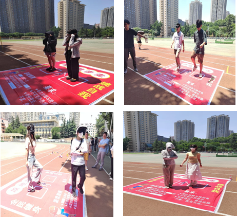 “走走停停不如定定”,蒙眼原地踏步,这是一项需要挑战者蒙住眼睛原地踏步60秒不出圈的极限挑战,蒙上眼睛一片黑暗,需要同学们平心静气地调动脚的触感,找到身体的平衡点。挑战现场掌声、欢呼声、笑声不断,整个活动现场趣味横生,热闹非凡。