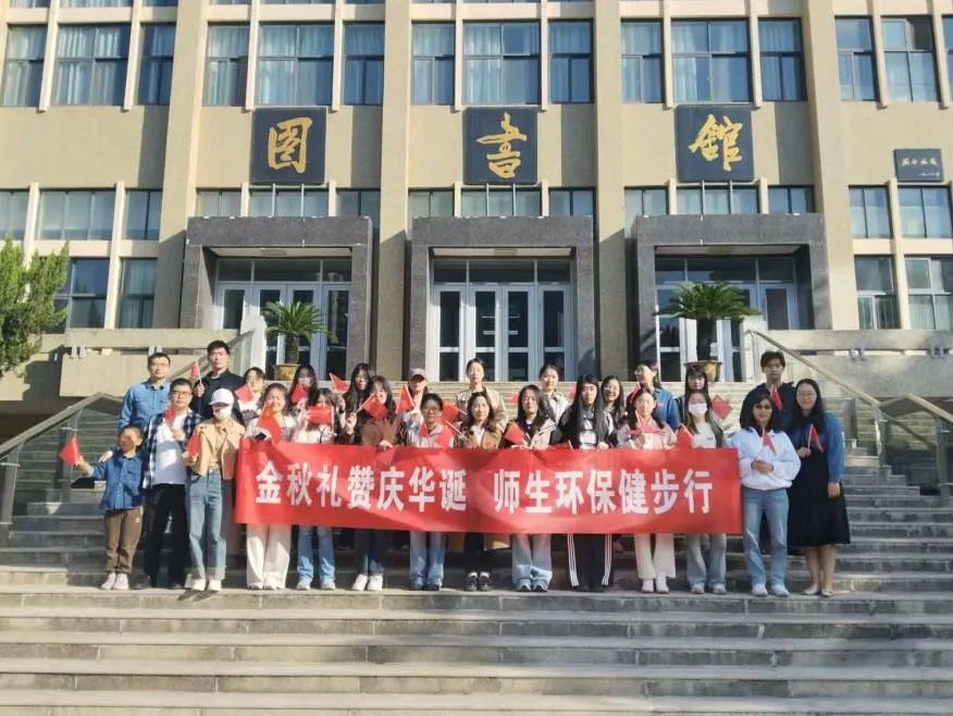 雁塔校区图书馆前启动了“金秋礼赞庆华诞 师生环保健步行”主题活动,一本道30余名师生代表参加。