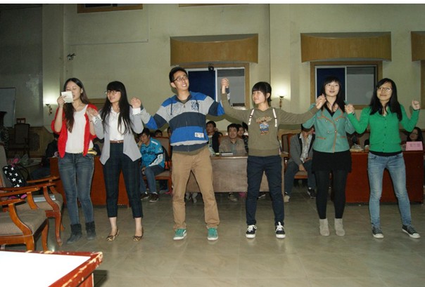 学生会在报告厅举办了大型的新老生见面会,学生会全体成员全员参与其中,在主席团对新生成员的亲切动员后,每个部都热情表演了自己的节目,并互动性的进行了一系列游戏:秘书处组织的“你来比划我来猜”;网络信息部的“谁是卧底”;文艺部的接歌游戏,最后的游戏更是将联谊会带入一个高潮。
