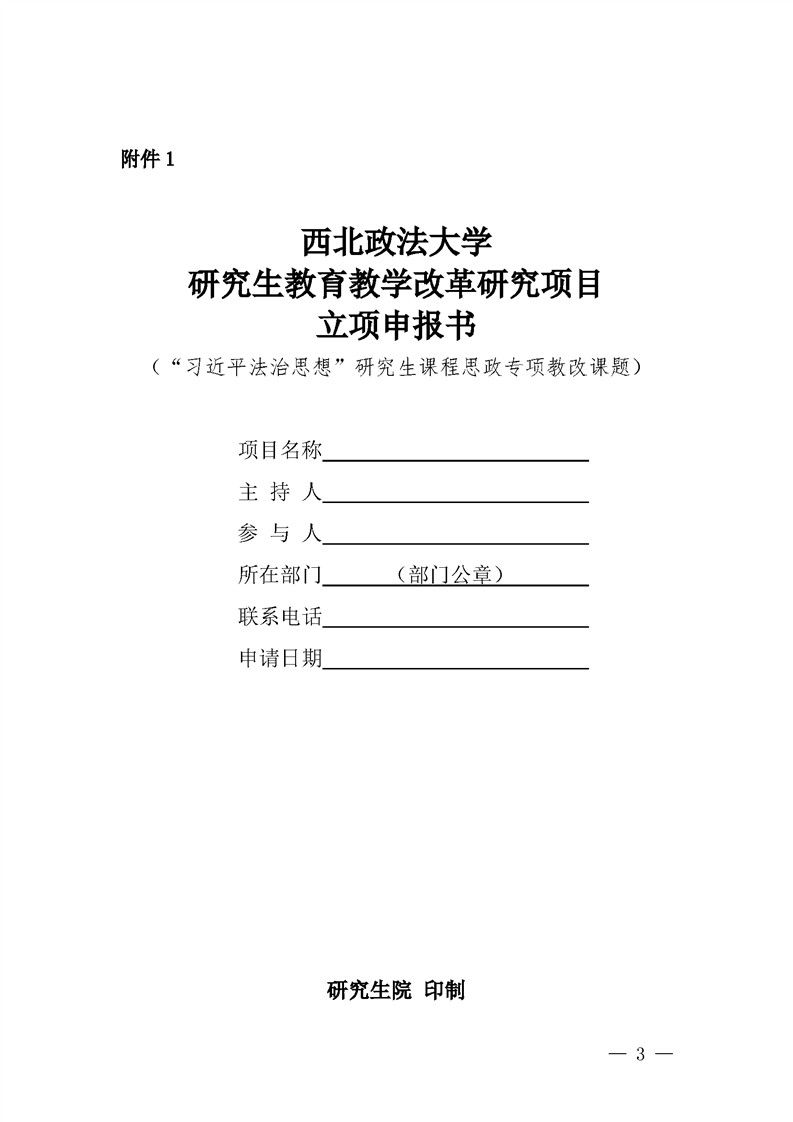附件1:关于申报“习近平法治思想”研究生课程思政专项教改课题的通知20240412(2).doc