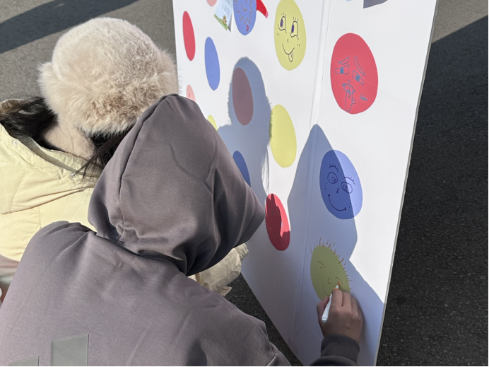 在解压涂鸦区,同学们用五彩斑斓的彩笔尽情创作,简单的线条与色彩交织成一道道独特的风景。在心理问题互动环节中,同学们随机抽取卡片并写下内容,勇敢地分享着自己的故事与想法。情绪交换便利贴区则充满了双向奔赴的善意:同学们将自己的烦恼贴在展板上,同时从“安慰盲盒”中抽取他人的烦恼,用心写下温柔的鼓励与真挚的祝福。
