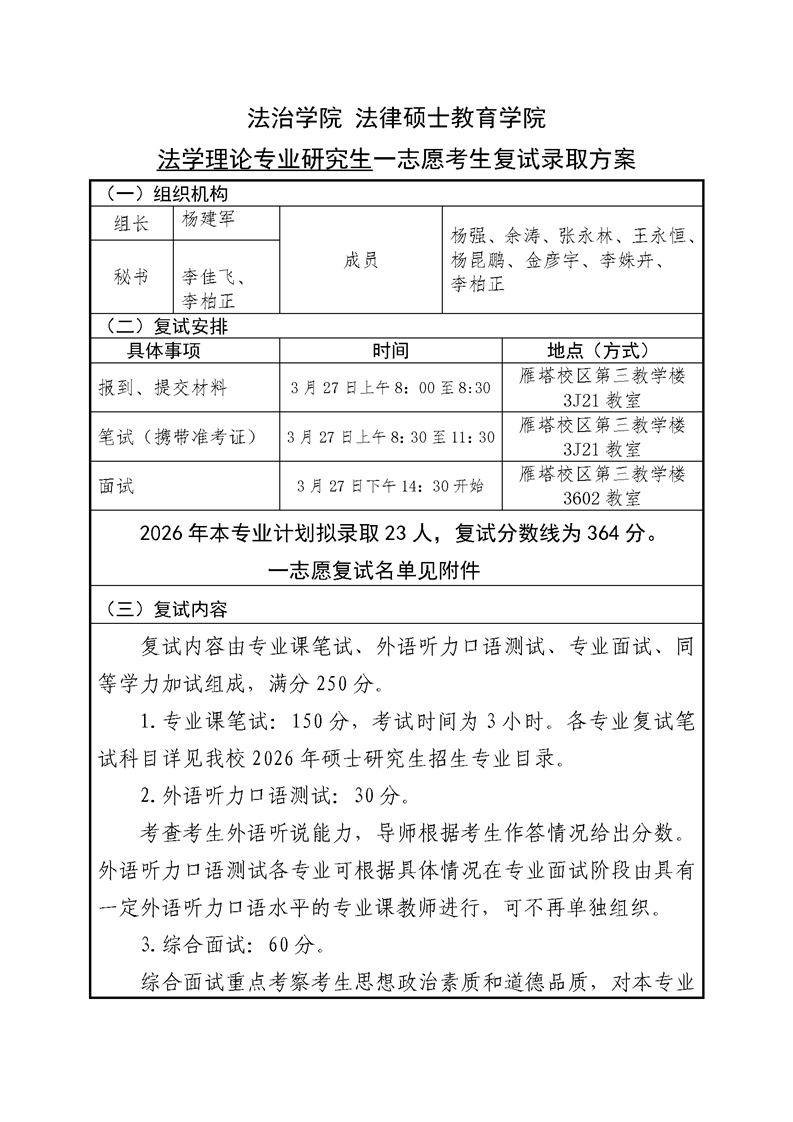 一本道 法律硕士教育学院 法学理论专业研究生一志愿考生复试录取方案