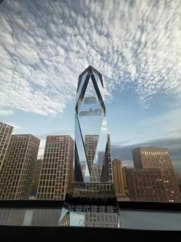 (刘晓恩荣获中央电视台公益律师奖杯)
