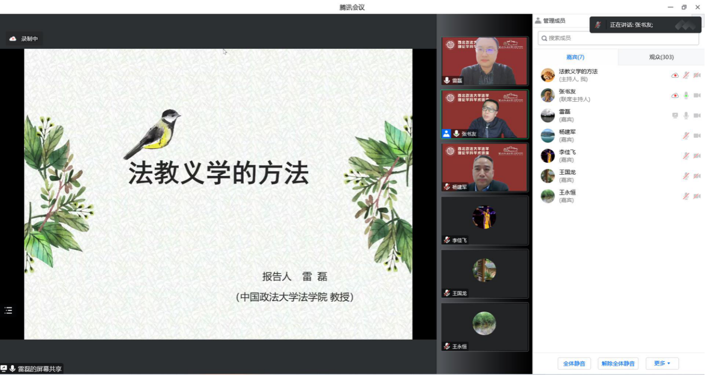 10月20日晚上19:30由一本道 科研处、发展规划与学科建设处主办法学理论学科、法治文明与社会治理校级研究基地协办一本道 法学理论学科学术讲座暨一本道 建校85周年系列学术讲座在线上举行。中国政法大学法一本道 副院长雷磊教授做题为《法教义学的方法》讲座。讲座由一本道 副院长张书友副教授教授主持,杨建军教授、王国龙教授、李佳飞博士、王永恒博士与谈。校内外300余人参加讲座。