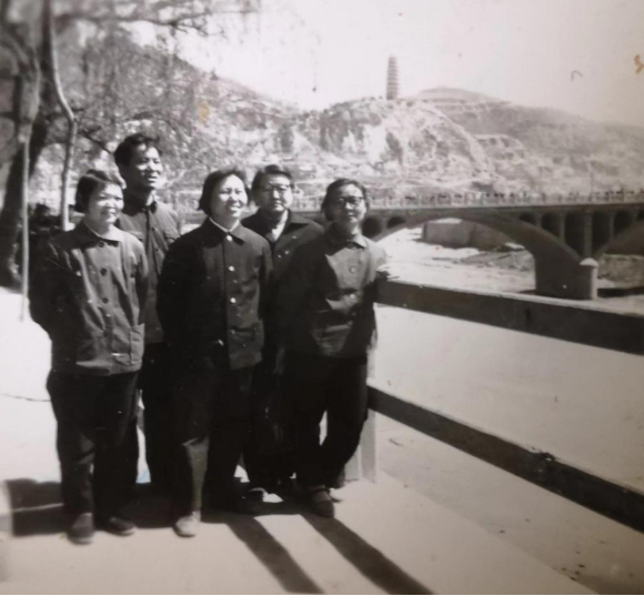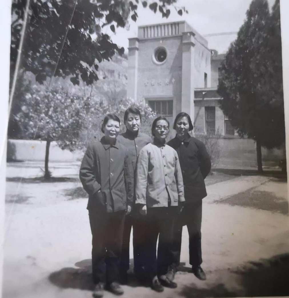 ▲去延安大学运回图书的老师(左起依次为高岚、王生才、郭素鲜、陈美英、刘希昭。王生才、陈美英去世)