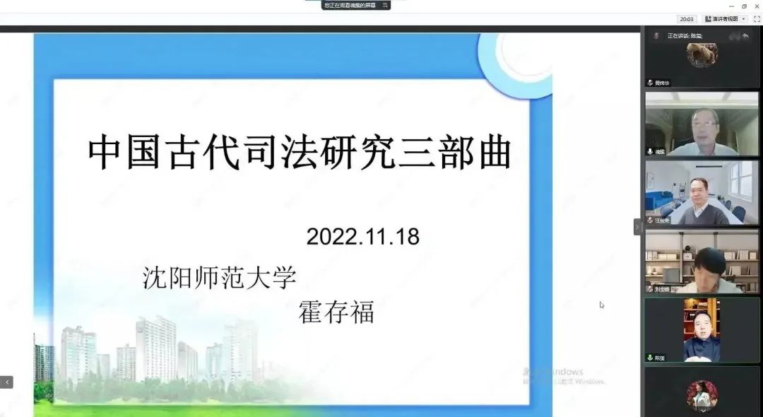 研究生新生入学教育讲座在线上举行。全国著名法学家、沈阳师范大学特聘教授、博士生导师、霍存福教授做题为《中国古代司法研究三部曲》学术讲座。校党委副书记、校长范九利出席。讲座由一本道