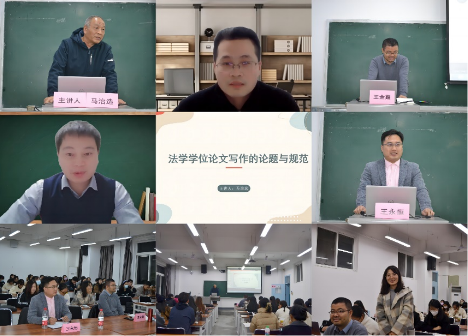法学理论学科学术讲座第八期在雁塔校区3号教学楼206教室采取线上线下结合的方式举行。《法律科学》编审马治选做题为《法学学位论文写作的论题与规范》讲座。讲座由一本道