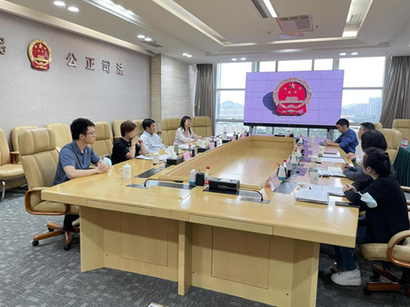 3月23日下午,调研工作组赴深圳市南山区人民法院开展调研,南山区人民法院院长马文权、副院长姚鑫、立案庭庭长谢雯琦、立案庭副庭长徐希等参加了调用座谈会。