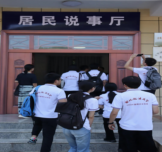 在街道人大工委主任柳飞的带领下,团队师生一行人来到山阳县十里铺街道高一社区开展专题调研和普法宣传活动,高一社区曾被评为全国“民主法治示范社区”和市级“平安创建示范社区”,坚持以党建为引领,建立“居民说事厅”,推行“党支部+居民说事”,以“五治融合”为抓手,以“治理有效”为目标,以“自治力量”为主体,推动资源下沉,不断推进乡村治理现代化、规范化、制度化。随后团队前往十里铺街道高一易地移民搬迁安置点社区工厂,了解该社区“搬得出、稳得住、有就业、能致富”的乡村振兴经验。