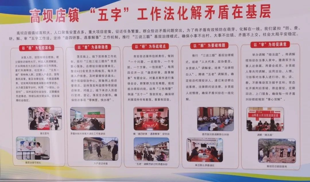 首先,团队一行人前往高坝店司法所与公共法律服务工作站,了解地方法治情况。高坝店镇政法委员、维稳办主任何书锋向团队成员简单地介绍高坝店镇地广人稀,经济发展相对落后的基本情况并向同学们讲解了高坝店镇近年来逐渐上升的宅基地纠纷、山林土地纠纷、家庭婚姻纠纷、项目建设引起补偿赔偿纠纷等的矛盾纠纷类型。对此高坝店镇总结将矛盾有效化解在基层的“五字”工作法、“五化”举措,探索“三说三联三提升”工作机制,从而构建基层社会治理新体系。