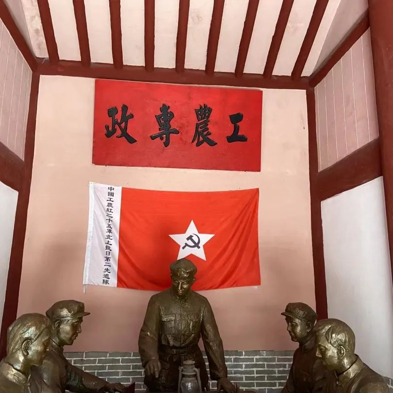 紧接着成员们参观了鄂陕边区苏维埃政府旧址,鄂陕边区苏维埃政府旧址是门头牌匾上写着“逢源和”的红色小院。麻雀虽小五脏俱全,院内有办公地点、革命法庭、保卫处等设施。正房内一组铜像,描述的是当年红二十五的关键人物集体开会的场景。头顶悬挂的“工农专政”牌匾和边墙上多达数百人的“鄂陕边区”英烈谱、里屋的革命法庭等等,这一帧帧定格的战斗画面,一幅幅布满字迹的作战地图,一幕幕烈士为革命事业赴汤蹈火的画面,无一不展现出那段艰苦卓绝、激情燃烧的革命年代。