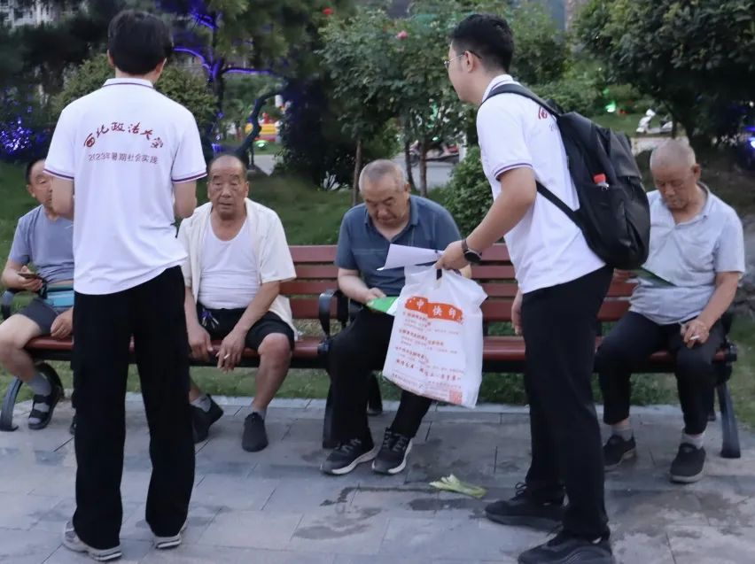 参观完袁家沟党性教育基地之后,实践团队直接在袁家沟村为当地居民进行普法宣传活动。围绕与农村生活息息相关的户籍办理,《民法典》、婚姻法、反家庭暴力法、未成年人保护法、义务教育法等法律法规,用朴实的语言、生动的案例,讲明、讲透法治知识。面向老年人以防范诈骗风险等保护老年人权益的法律普法宣传;向青壮年群体宣讲的主要是劳动法、婚姻法;向少年儿童群体宣讲的主要是抚养、教育和保护相关的权利与义务,使普法宣传真正做到从“大水漫灌”到“精准滴灌”,为高质量普法宣传助力乡村振兴效能提升提供重要抓手。