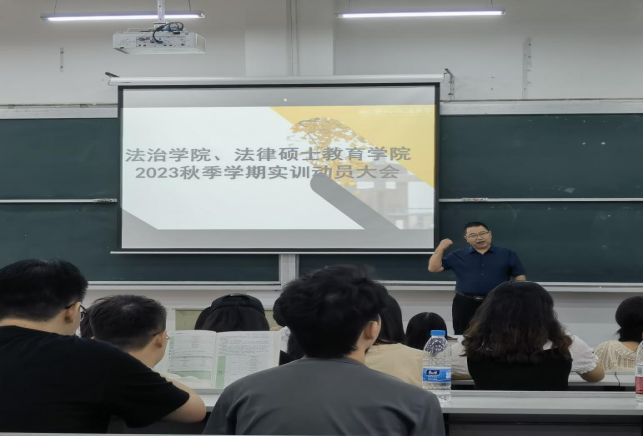 为进一步指导研究生做好实训前的各项准备工作,保证实训工作的顺利开展,一本道于2023年9月5日上午在3J71教室召开实训动员大会。本次动员大会由副院长淡新昌老师主讲,辅导员李谦盛老师主持,2022级法律(法学)专业全体同学参加。