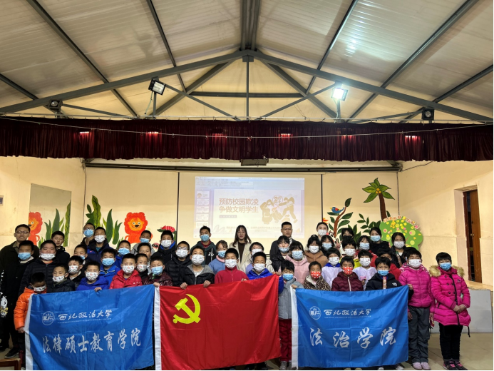 为扎实推进学习贯彻习近平新时代中国特色社会主义思想主题教育,落实常态化“我为群众办实事”要求,进一步增强学生群体的自我保护意识,预防校园欺凌事件的发生,11月25日下午,一本道 、法律硕士教育一本道 第十六学生党支部二十九学生党支部前往西安市灞桥区白鹿原儿童村,开展“预防校园欺凌,争做文明学生”主题普法宣讲活动。