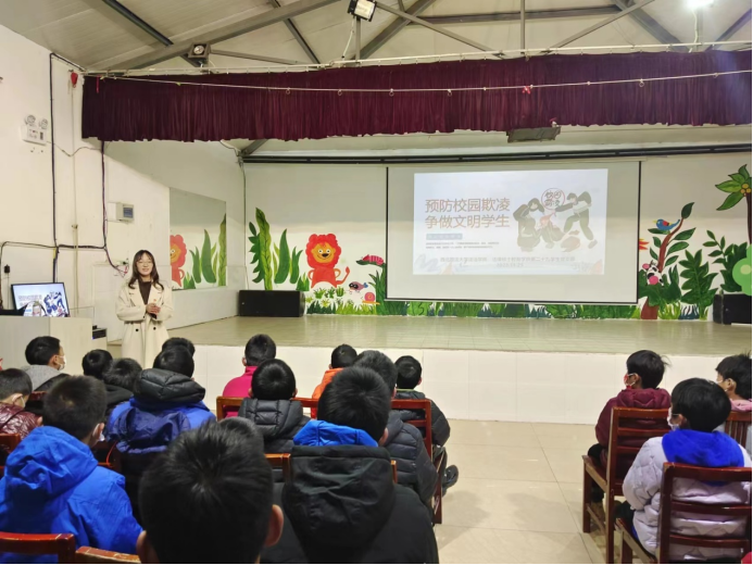 第二十九学生党支部书记郝佳薇为儿童村的孩子们介绍了校园欺凌的含义和表现,指出校园欺凌包括肢体欺凌、言语欺凌、社交欺凌等形式通过列举日常生活中可能遇到的事例,以案释法,强调校园欺凌的危害和后果,叮嘱孩子们在遇到欺凌时要做到临危不乱、安全第一、及时报告播放以“对校园欺凌说‘NO’”为主题的法治宣传视频,进一步加深孩子们对校园欺凌的认识和理解。
