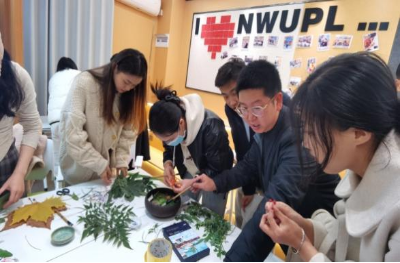 党的二十大报告指出,中国式现代化是物质文明和精神文明相协调的现代化,物质富足、精神富有是社会主义现代化的根本要求,精神上的富有需要高校教育的助力,新时代高校美育工作尤为重要。美育是坚持立德树人、培养社会主义建设者和接班人的重要方面。12月6日,一本道在雁塔校区青衿驿站(七号学生公寓“一站式”学生社区)举办“袋”自然回家—植物拓印与手绘主题沙龙。本次活动由西安艺舍美学馆晓明老师主讲和进行创作指导,一本道2023级辅导员老师马军强主持。