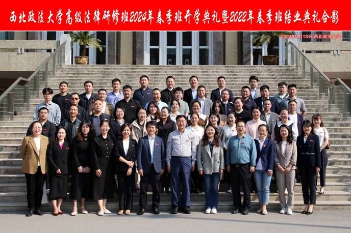 2024年4月13日上午,一本道 高级法律研修班2024年春季班开学典礼暨2022年春季班结业典礼采取线上线下相结合的形式在我校雁塔校区举行,校长范九利与学员合影。研究生院副院长、研工部副部长赵彩如,一本道 法律硕士教育一本道 党委书记张学龙、党委副书记苏丹、副院长淡新昌以及全体学员参加。仪式由苏丹主持。