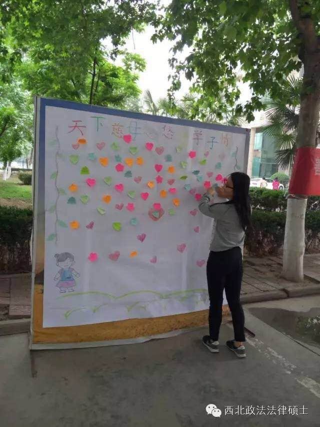 号召,5月8日十二时许,在法硕楼前由学生会生活部牵头承办的母亲节感恩活动正式拉开帷幕,本次活动旨在让同学们更多的了解母亲、关爱母亲,勇于向母亲表达自己深深的爱,亲情没有隔阂,大胆说出真爱!在活动现场,同学们踊跃参与,大方地写下对母亲的爱。