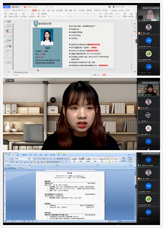 2020年7月16日下午,各位营员按照考核分组,在7名老师的主持下,进行了群体面试。首先由营员进行自我介绍,介绍个人简历、取得成绩、个人优势、自我评价、报考原因、学习规划等方面,随后就老师提出的开放性问题进行回答,各个营员各展所长,各具特色,优秀频出。