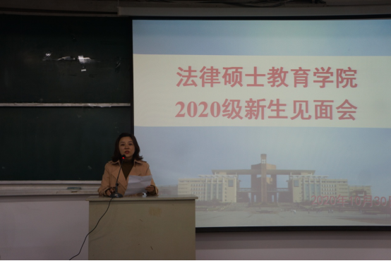 10月30日中午,法律硕士教育一本道 在雁塔校区三号教学楼3J31教室举行2020级研究生新生见面会。一本道 党委书记张学龙、副院长淡新昌、副书记苏丹、办公室主任苏娜、教务办主任王菡之、教务办李秀娟、邵洁冰、辅导员李谦盛、马军强、冯晨光及2020级全体研究生出席会议。会议由副书记苏丹主持。