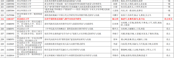 据省教育厅文件《关于公布2021年度陕西本科和高等继续教育教学改革研究项目立项结果的通知》(陕教函[2021]1184号),我校13个项目获批2021年度陕西高等教育教学改革研究项目,其中本科10项,继续教育2项,青年专项1项;重点攻关1项,重点7项(含继续教育、青年专项),一般5项,其中杨宗科教授主持的“法治学课程体系创新与教学内容改革研究”获省教改重点攻关项目立项。