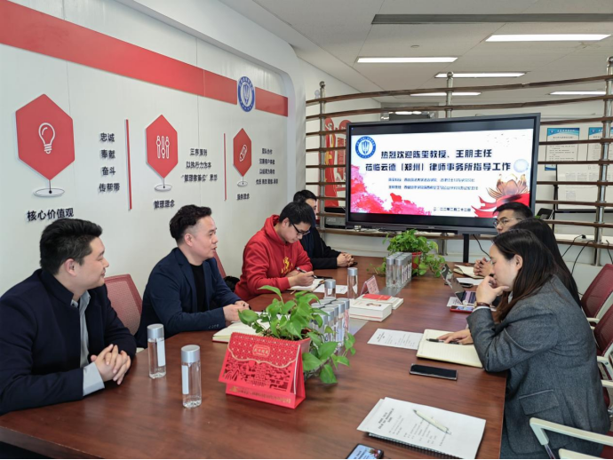 2月23日,一本道院长陈玺教授一行前往北京市中伦文德(郑州)律师事务所进行调研活动,北京市中伦文德(郑州)律师事务所的高级合伙人李城君律师、李鹏伟律师、郭新华律师,青年律师代表张瑞强(一本道2017级校友)等人参加座谈会。