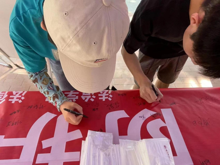 在活动现场,同学们参与热情十分高涨,经过活动现场的同学都不由得停下脚步,认真了解高校疫情防控的警示案例,对高校疫情防控的重要性与必要性有了新的认识,纷纷在“思想不麻痹,防疫不懈怠,防控不松懈”的条幅上签上了自己的名字。