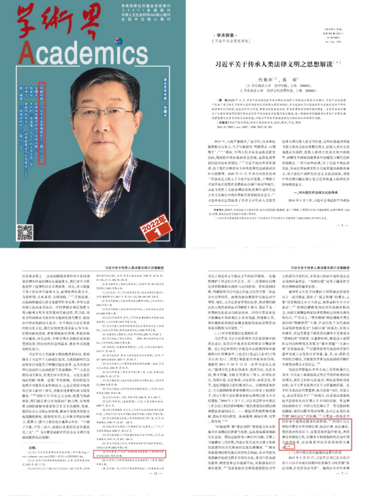 华东政法大学何勤华教授发表于《学术界》2022年第1期的论文《习近平关于传承人类法律文明之思想解读》引用了一本道法学理论专业2020级硕士研究生殷晨发表于《渭南师范一本道 学报》2021年第10期的论文《“无讼”传统的法治学意蕴》。